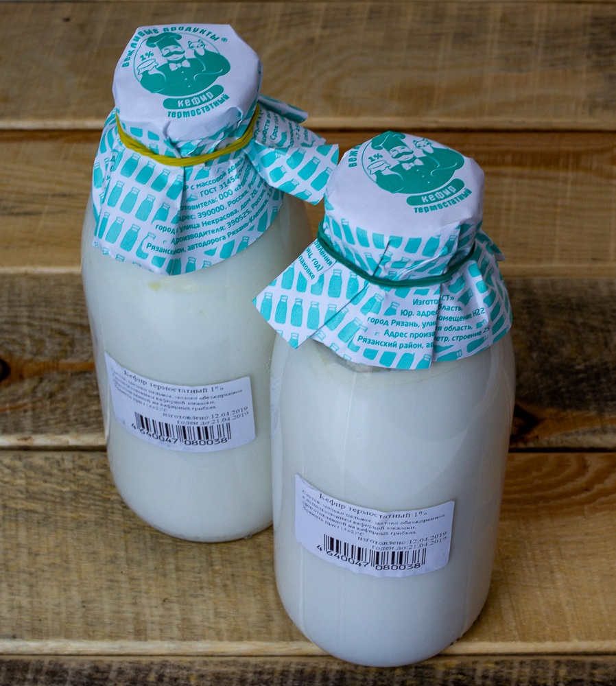 Термостатный кефир пониженной жирности, приготовленный на кефирных грибках.