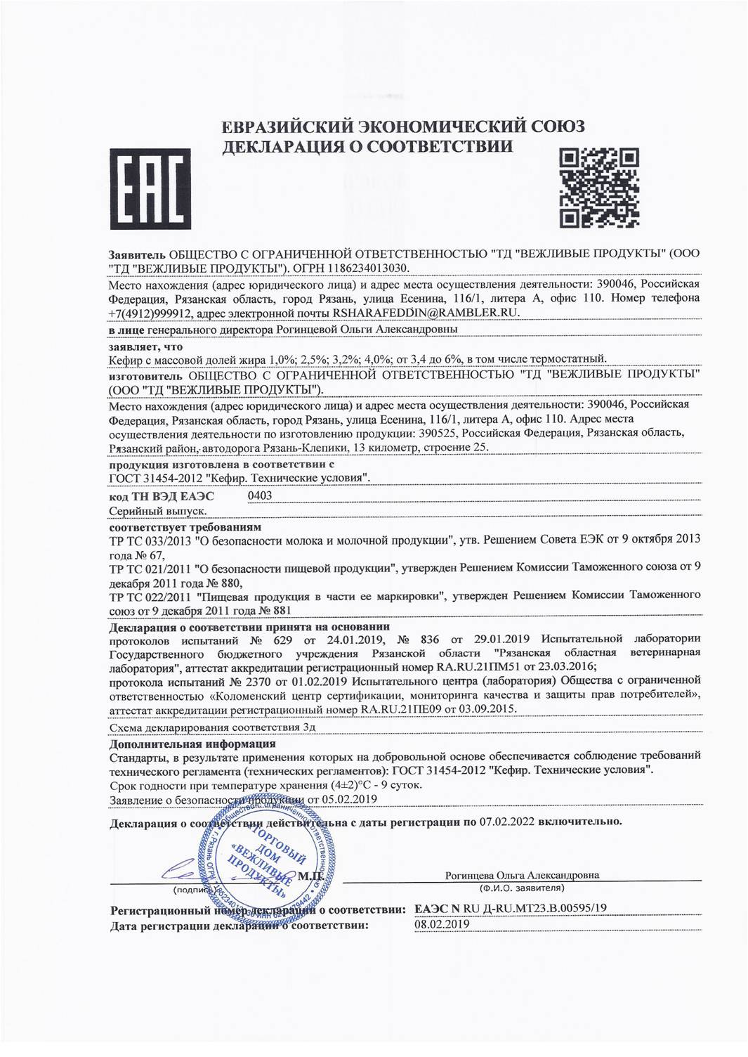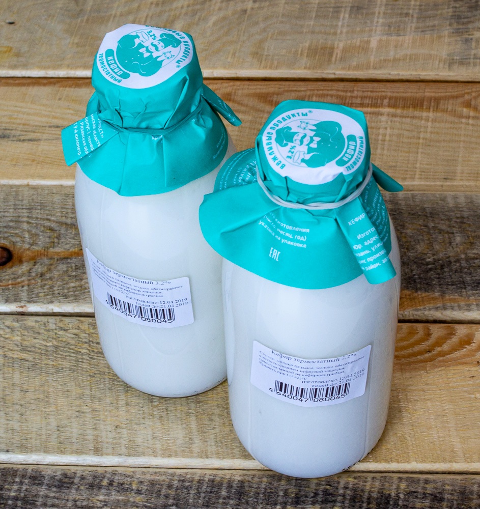 Термостатный кефир традиционной жирности, приготовленный на кефирных грибках.
