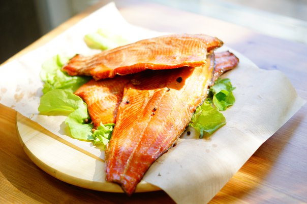Филе из карельской форели, холодного копчения, приготовленная на нашей коптильне на ольховой щепе по финской технологии накануне доставки