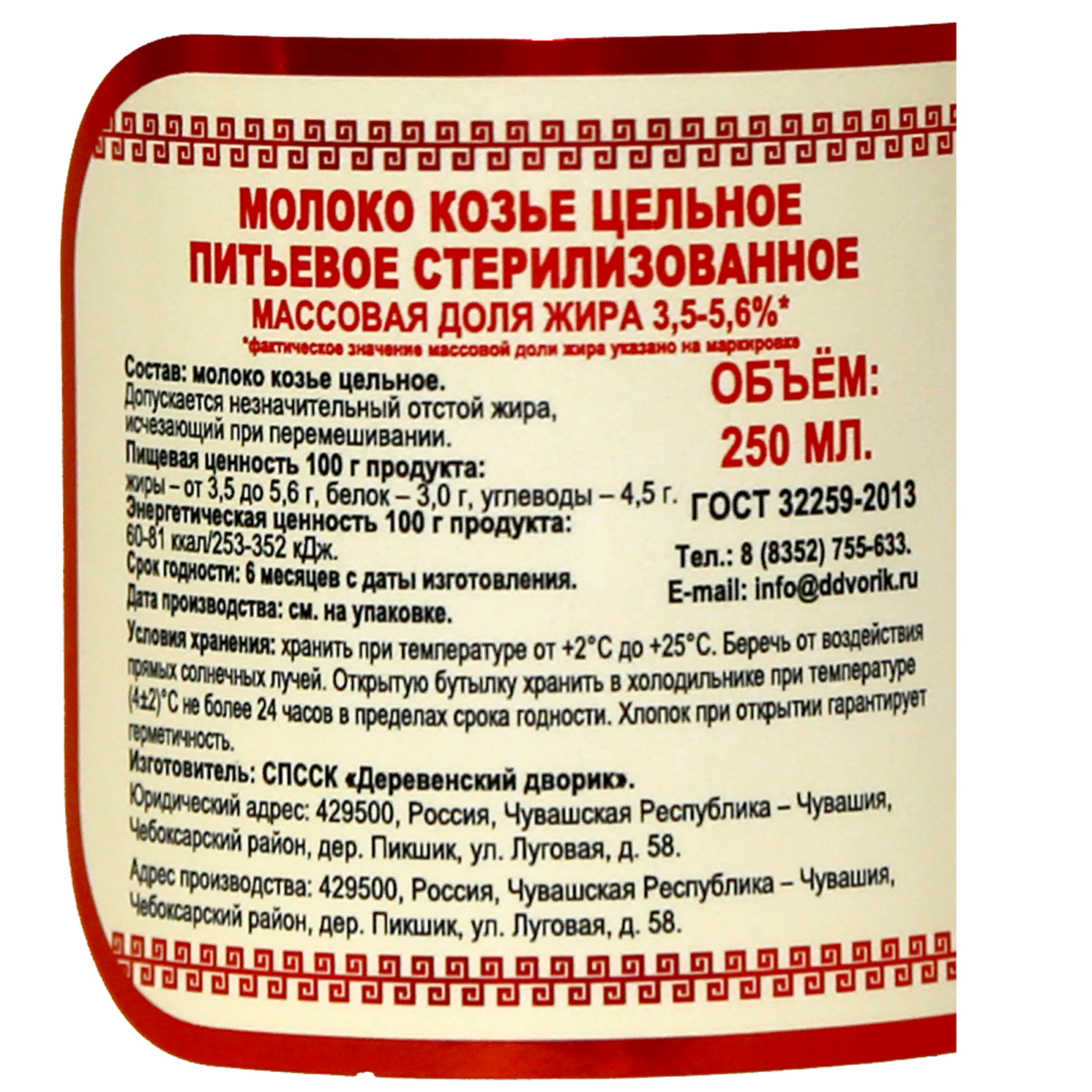 Молоко козье Фермерское отборное стерилизованное мдж 3,5-5,5% премиум класса Стеклянная тара 250 мл