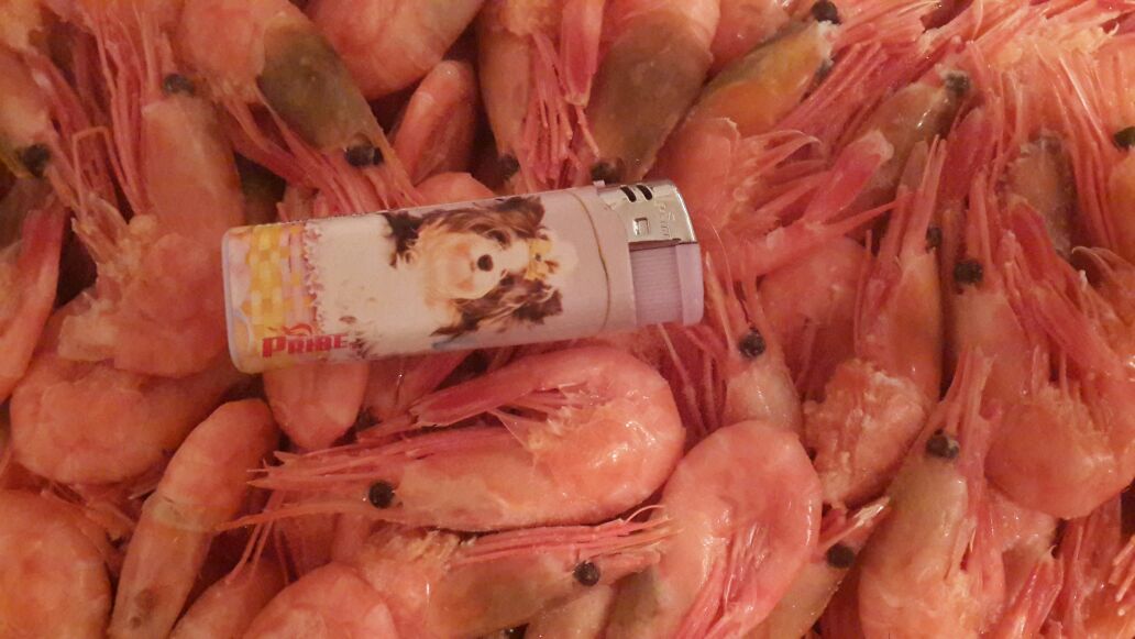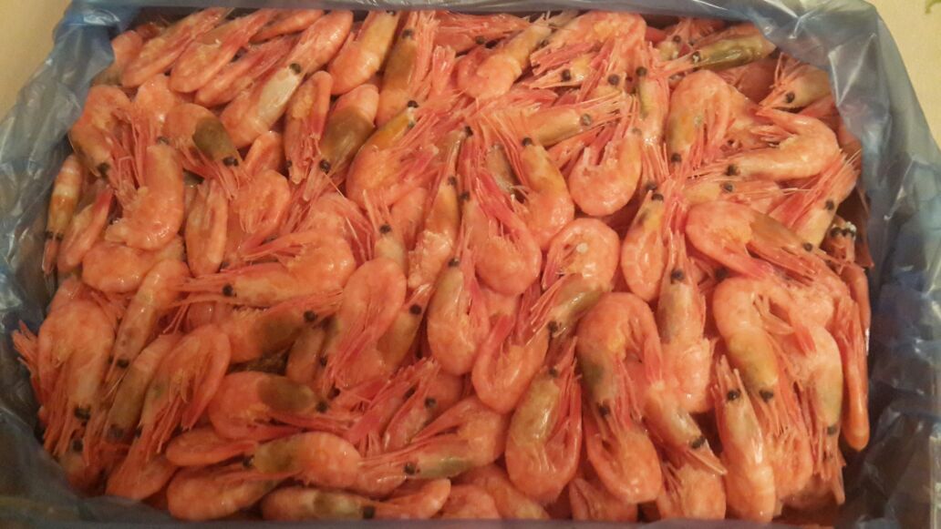 Креветки вареные и замороженные на корабле, не более 3% глазури (сухие креветки).