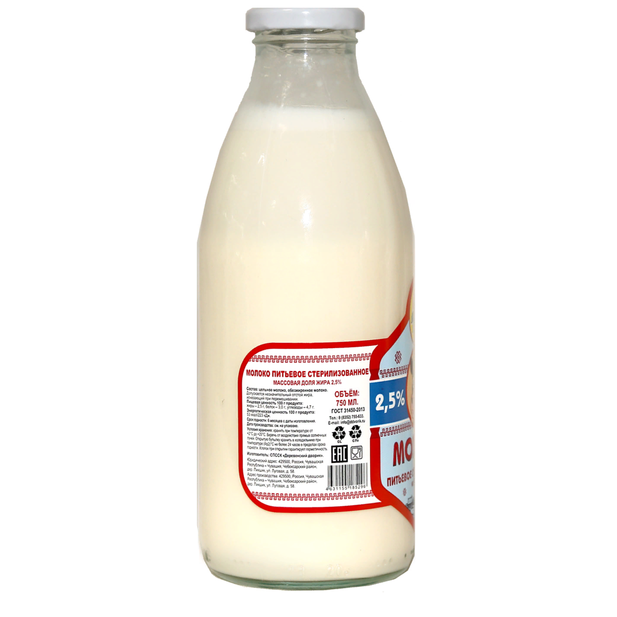 Молоко коровье питьевое стерилизованное ,фермерское мдж 2,5% премиум класса Стеклянная тара ,емкость 750 мл