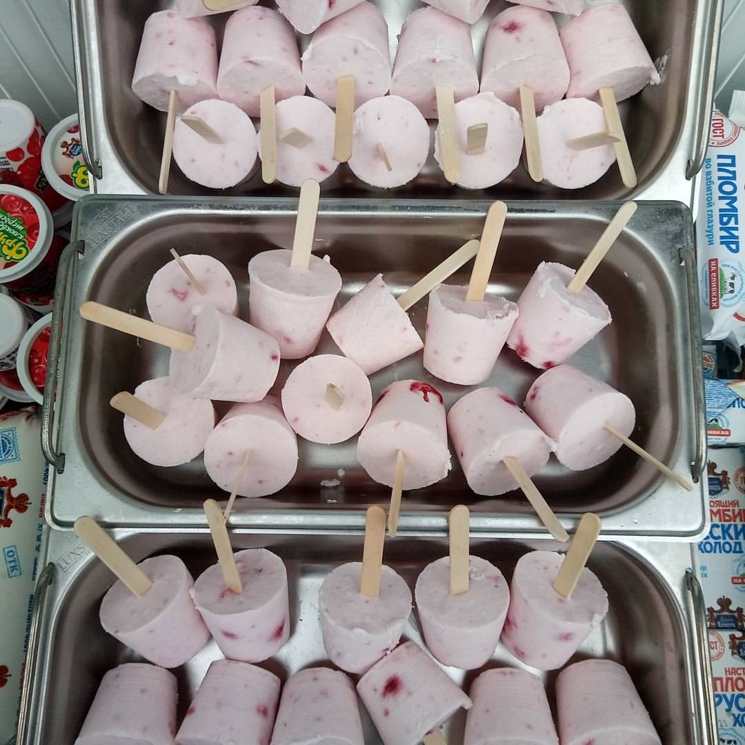 Творог, ягода (малина; клубника; черная смородина; дыня; вишня), сахар, ванилин.