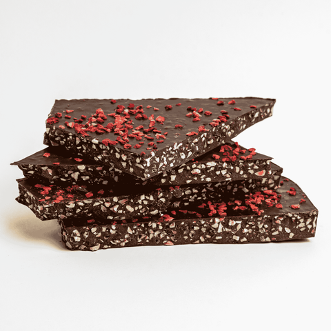 Состав:Какао тёртое натуральноеКакао масло нерафинированноеТростниковый нерафинированный сахарФундукМалина сушёнаяКБЖУ(на 100 г):Калории: 560 ккалБелки: 5,81 гЖиры: 34,54 гУглеводы: 29,18 гВес: 1кг
