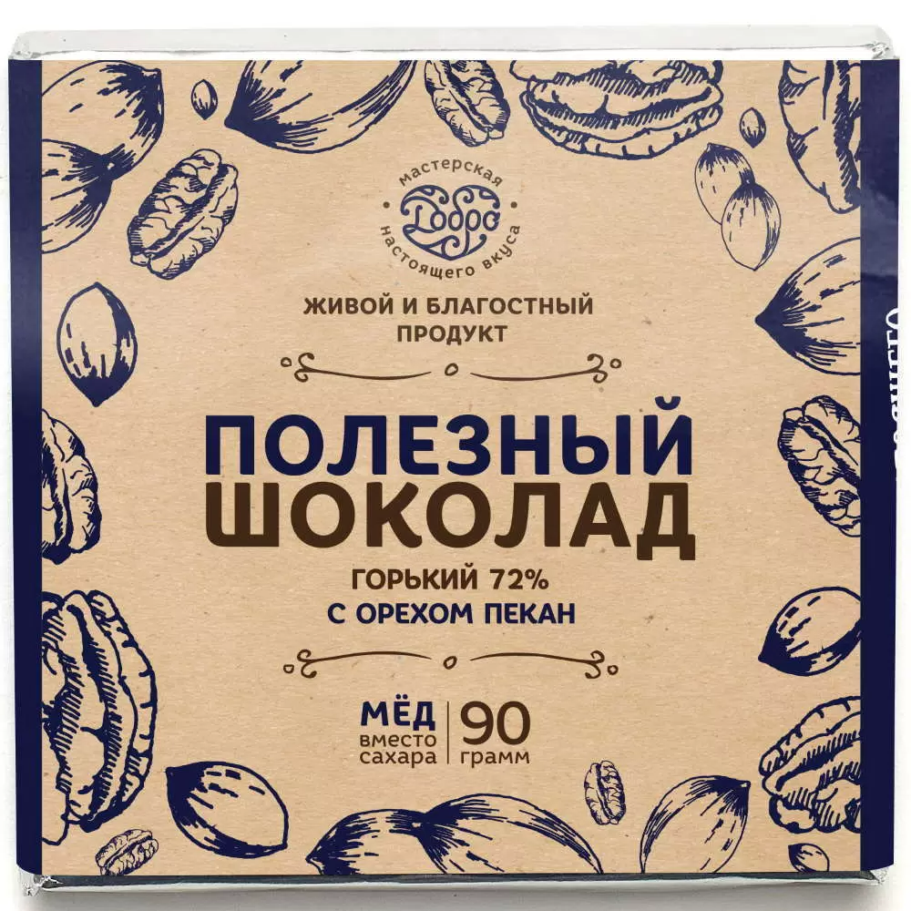 Шоколад с пеканом вы захотите есть снова и снова. Потому что забыть сочетание горького натурального шоколада и изысканного и слегка жирноватого пекана трудно. Особенно, если пекан в шоколаде отборный, с нежным ванильно-шоколадным вкусом.Без горчинки, которую можно встретить у грецких орехов.Немного нежнее и мягче обычных орехов.С приятной сладостью и маслянистостью.Мы используем свежий пекан из Крыма, а не из Северной Америки с доставкой в несколько месяцев.Если вы закроете глаза и попробуете качественный орех пекан, вы подумаете, что это такое вкусное печенье. Насколько он поражает своим вкусом.Именно такой пекан в шоколаде Добро.Представьте, как приятно, когда вы чувствуете маслянистость орешка в сочетании с плотным горьковатым вкусом шоколада. Крупного пекана, не измельченного в безвкусную крошку. Сохранившего свой истинный вкус, за который мы так любим этот изысканный орех.