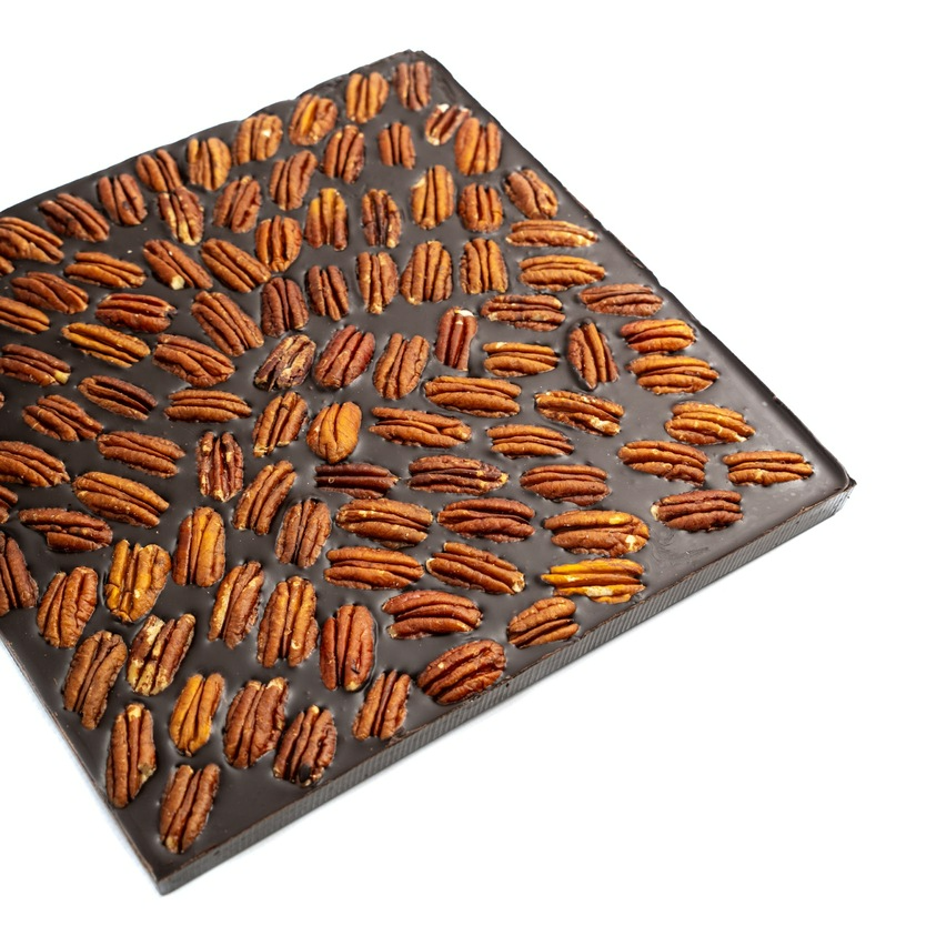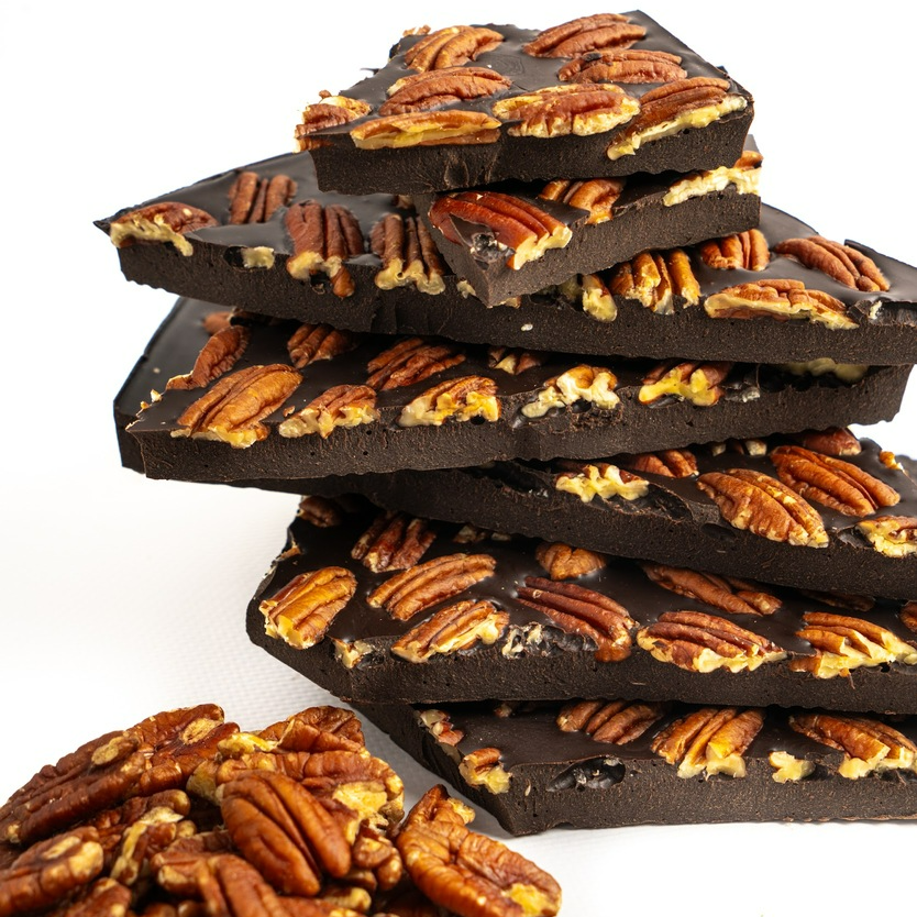 В каждой дольке всего 12,76 г углеводов! Содержит 65% редкого какао из Колумбии (Фино де Арома) и дробленый пекан, что придает ему уникальный и насыщенный вкус. Подсластитель эритритол не добавляет лишних калорий и ароматов, а лишь освежает вкус.