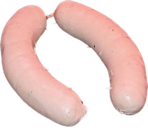 Типичная баварская сосиска (нем. Weißwurst), употребляется со сладкой горчицей и кренделем - всё это можно приобрести у нас.