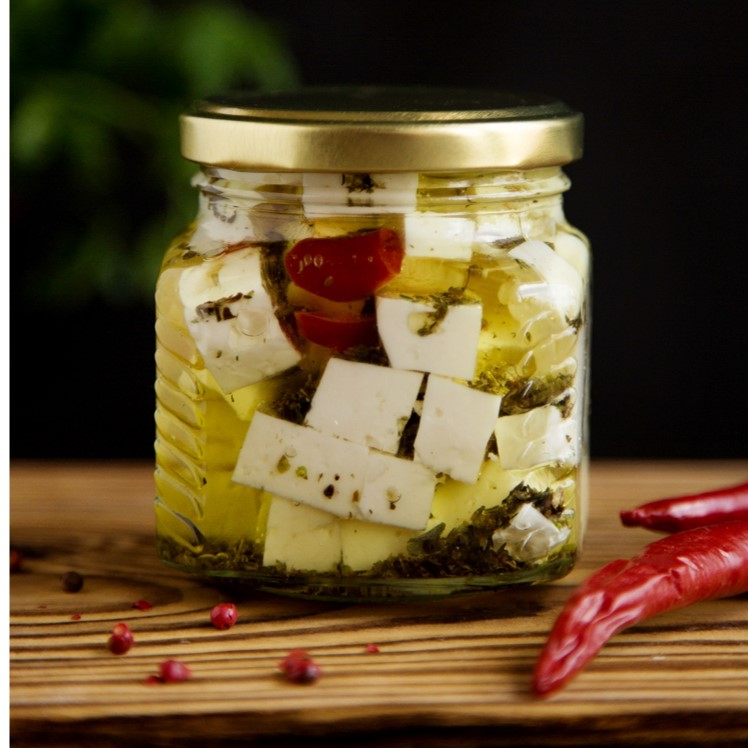 Классическая фета в оригинальном прочтении. Привычный солоноватый кисломолочный вкус сыра дополнен приятной остринкойМы немного отошли от привычного огромного куска феты и нарезали её на плотные кубики, положили в баночку с подсолнечным и оливковым маслом, добавили пряные травы и острый красный перец, чтобы Вы без лишних хлопот смогли насладиться обедом или ужином Фета с красным острым перцем – это идеальная заправка для Ваших салатов. Просто добавьте к содержимое баночки к Вашим любимым овощам и салат готовСостав: молоко цельное , закваска мезо, сычужный фермент, подсолнечное масло, оливковое масло, соль поваренная пищевая, специи (укроп, петрушка, орегано, базилик, розмарин, тимьян, лук порей, смесь перцев (паприка, перец черный, душистый, красный, белый, чеснок, кориандр, чили), свежий острый красный перец.Срок годности: 90 суток. Хранить при температуре 4±2°С и относительной влажности воздуха не более 85%. После вскрытия упаковки употребить продукт в течение 24 часов.Белки - 15.8 ,жиры -20.9, углеводы - 2.1Энергетическая ценность ккал 253/кДж 1058Банка 275 г.