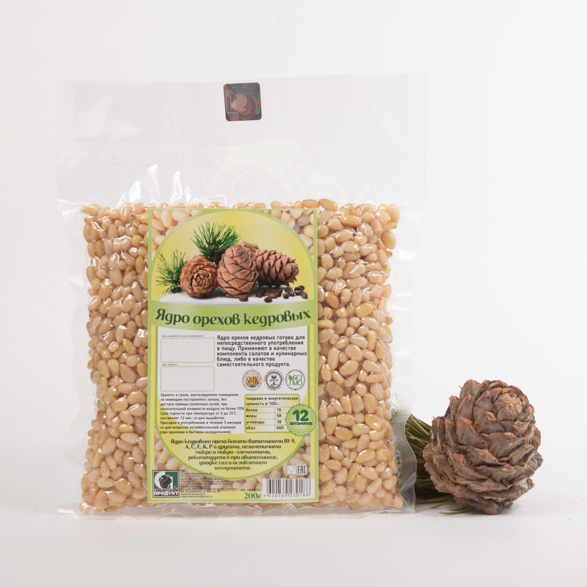 ЯДРО кедрового ореха, 200 гр, вакуум.