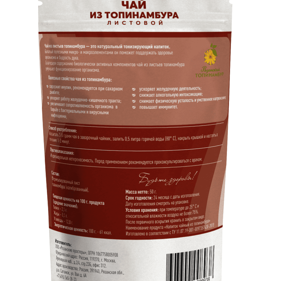 Богатый полезными микро- и макроэлементами он поможет Вам поддержать здоровье организма и бодрость духа. Благодаря содержанию биологически активных компонентов чай из листьев топинамбура улучшает функционирование организма.