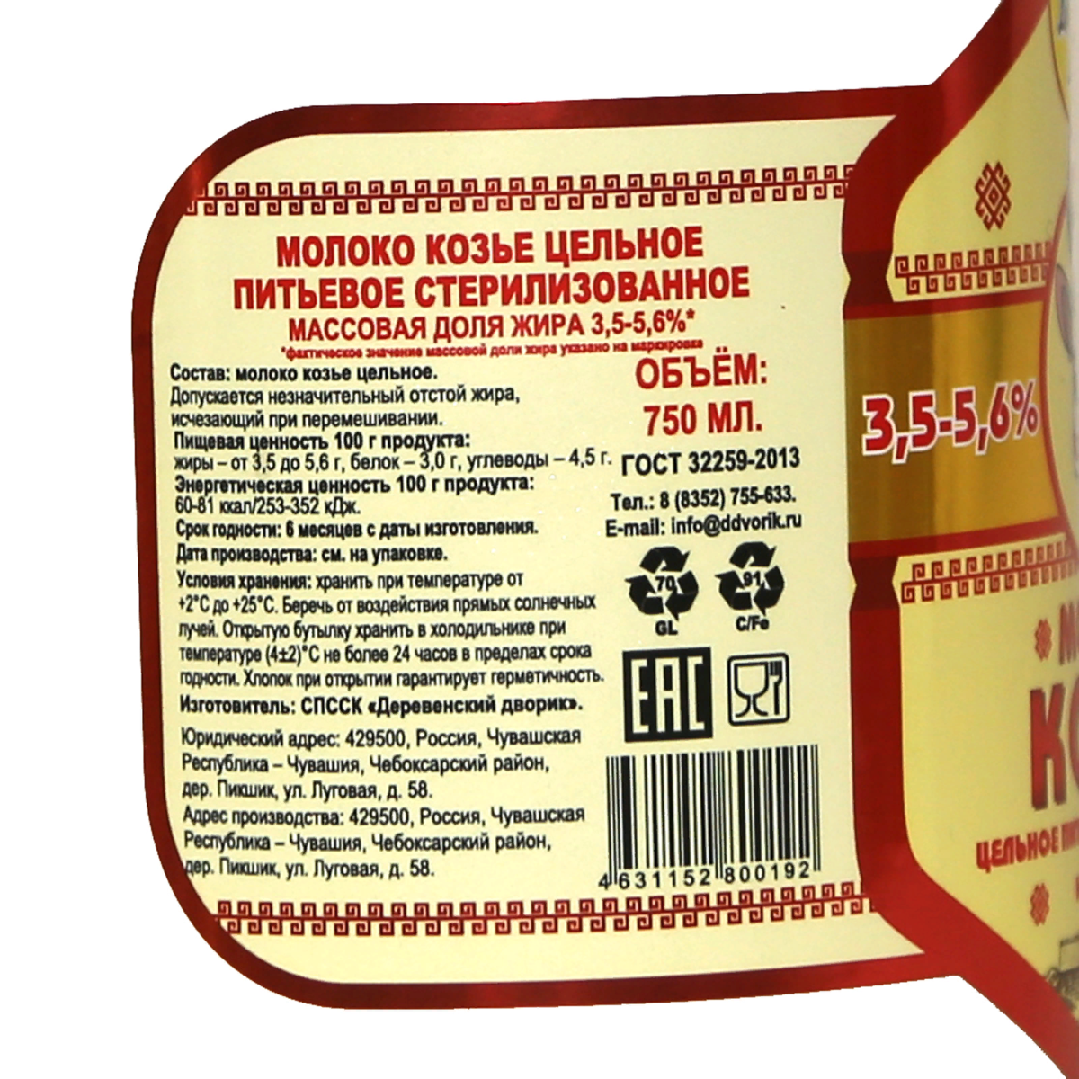 Молоко козье Фермерское отборное стерилизованное мдж 3,5-5,5% премиум класса Стеклянная тара 750 мл