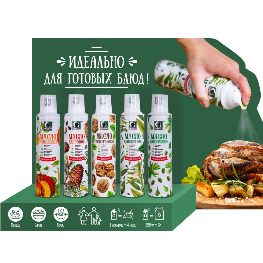 Уникальная вакуумная упаковка исключает контакт масла с воздухом и солнечными лучами, а значит не дает ему окисляться и сохраняет все полезные свойства. Для удобства использования спрей оснащён специальным распылителем, который равномерно покроет все ингредиенты Ваших блюд, при этом значительно снижая калорийность. Одно нажатие равно 4 ккал.Распылитель позволяет в 3 раза экономичнее использовать масло, при ежедневном употреблении флакона 250 мл хватит на 2-3 месяца.