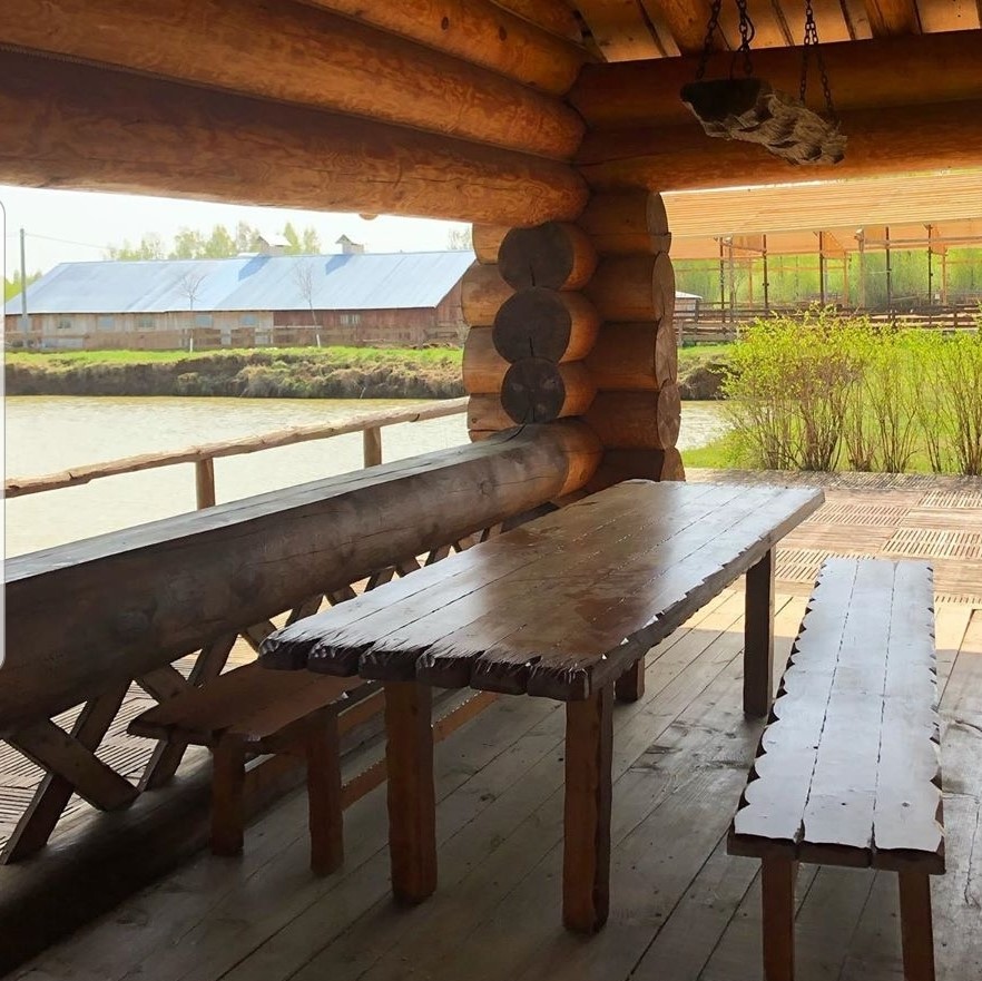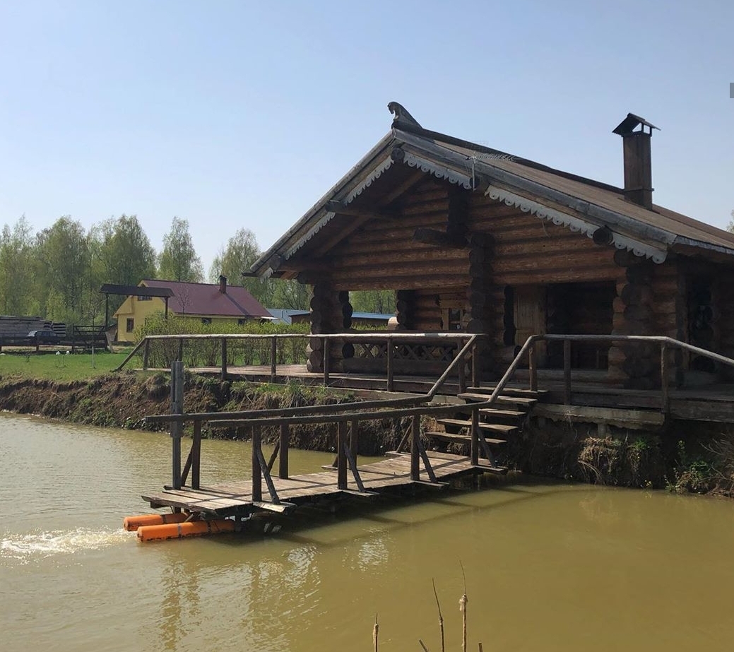 А еще к бане прилагается великолепная терраса и мангальная зона) И все это с видом на пруд, в котором плещутся карпы)