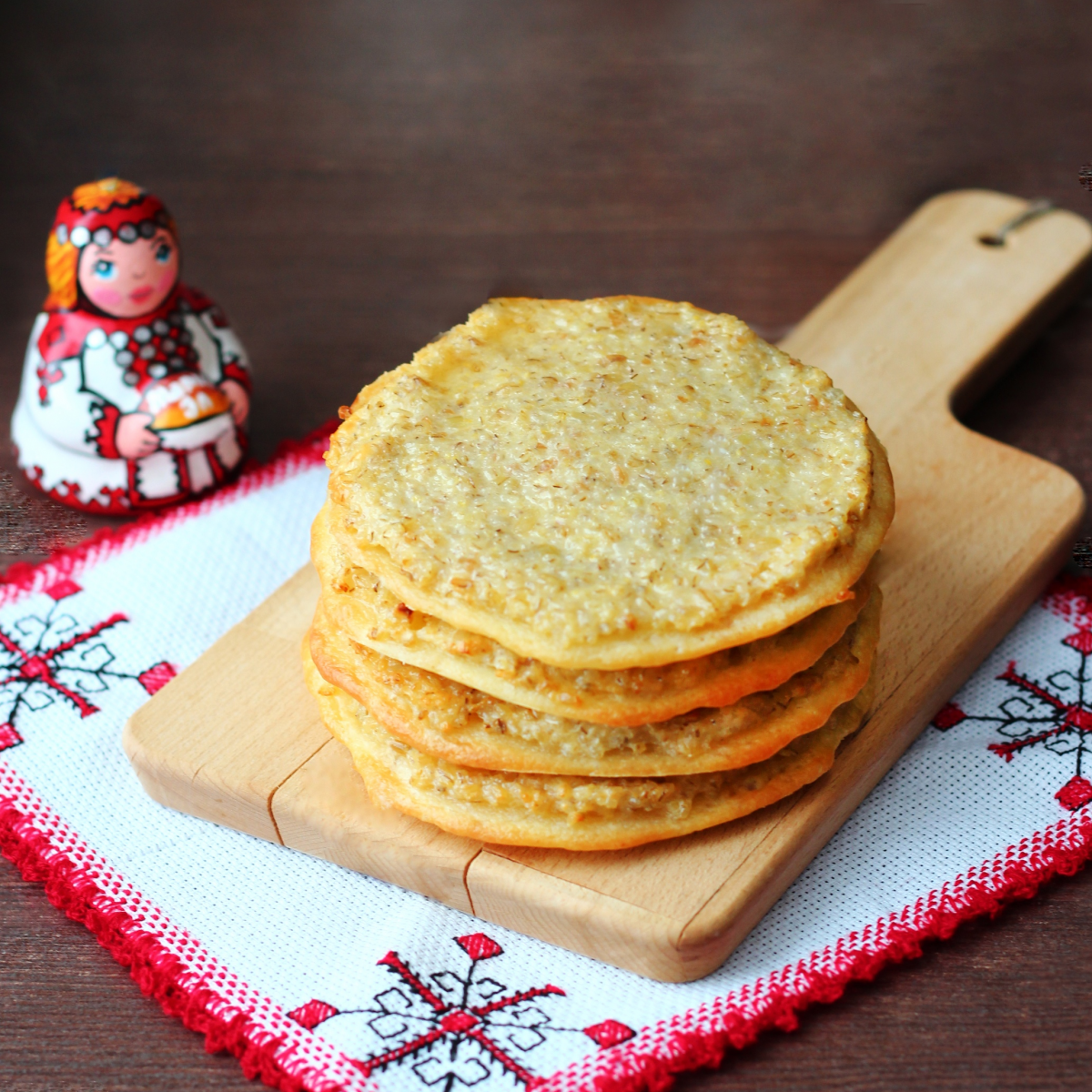 Часто их называют трехслойными или "трехэтажными"блинами. Пекут их размером со сковороду, традиционно используя ржаную муку. Традиционно коман мелна пекут по- отдельности. Для первого слоя готовят крутое пресное тесто из муки, яиц и соли. Для второго- сметану разводят с молоком и добавляют овсяную или манную крупу. Для третьего слоя берут овсяную крупу, вымоченную в сметане или сливочном масле.Готовые блины выкладывают стопкой, предварительно смазав каждый сливочным или топленым маслом.