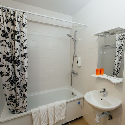 Просторный двухкомнатный номер с одной двуспальной кроватью и двухъярусной для комфортного времяпрепровождения и отдыха всей семьи.В номере большой телевизор, кондиционер. В санузле: фен и ванная.Семейные номера названы «Боярскими хоромами» и полностью оправдывают это название.